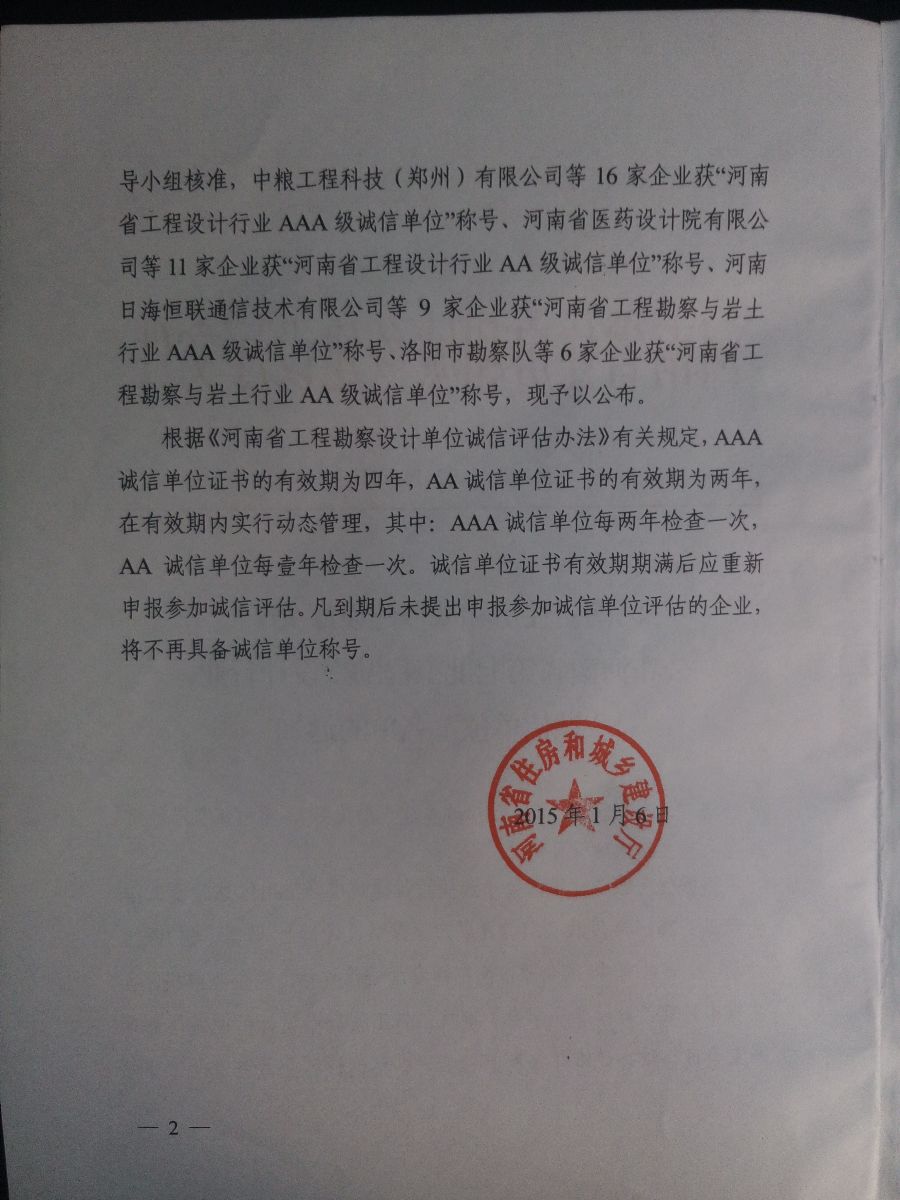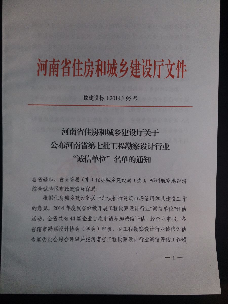 河南省住房和城鄉(xiāng)建設(shè)廳關(guān)于公布河南省第七批工程勘察設(shè)計行業(yè)“誠信評估”名單的通知
