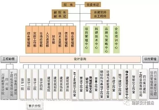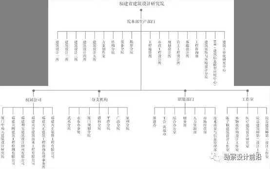公司下設(shè)綜合設(shè)計(jì)分院、工程勘察分院、建筑創(chuàng)作室、工作室、工程咨詢管理、施工圖設(shè)計(jì)文件審查、工程檢測、市政、景觀、規(guī)劃、節(jié)能等多個業(yè)務(wù)部門和分支機(jī)構(gòu)。組織結(jié)構(gòu)圖如下: