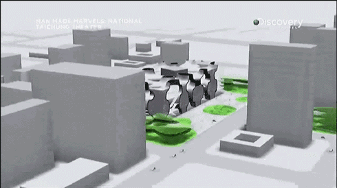 將若干個單元體系組合之后加以變化,就可以適應各種功能成為各種歌劇院或者圖書館。