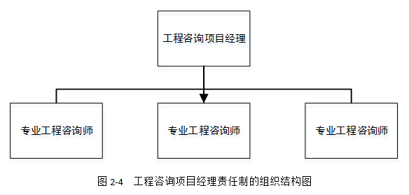 根據(jù)簽訂工程咨詢服務(wù)合同,從事全過程工程咨詢服務(wù)的咨詢單位需要構(gòu)建與項目特點(diǎn)相適應(yīng)的組織體系,導(dǎo)則中把單獨(dú)構(gòu)建的組織體系稱為工程咨詢服務(wù)機(jī)構(gòu)。工程咨詢服務(wù)機(jī)構(gòu)主要采取工程咨詢項目經(jīng)理責(zé)任制,這也是全過程工程咨詢服務(wù)組織的核心特點(diǎn)。工程咨詢項目經(jīng)理由工程咨詢服務(wù)單位的法定代表人書面任命,工程咨詢項目經(jīng)理必需具有與工程類別和工程規(guī)模相適應(yīng)的工程建設(shè)類的國家注冊執(zhí)業(yè)資格,并在工程咨詢單位注冊,也可以是省部級及以上專家委員會工程類專家。更換工程項目經(jīng)理時,必需征求建設(shè)單位的同意。同時,導(dǎo)則明確了工程咨詢項目經(jīng)理職責(zé)。在工程咨詢項目經(jīng)理下,設(shè)專業(yè)工程咨詢師,在工程咨詢項目經(jīng)理的授權(quán)下工作,主要負(fù)責(zé)編制各個階段、各專業(yè)或各類專項管理工作的操作性文件,如《專業(yè)(專項)工程實(shí)施細(xì)則》,專業(yè)咨詢工程師可以兼任相關(guān)崗位,主要有:安全管理崗;質(zhì)量管理崗;技術(shù)管理崗;造價管理崗;建設(shè)協(xié)調(diào)崗位;進(jìn)度管理崗;物資管理崗;合同管理崗;工程信息及檔案管理崗位。可見,工程咨詢項目經(jīng)理責(zé)任制下,專業(yè)咨詢工程師不僅可以做咨詢,還可以兼任管理崗,是一種咨詢和管理相結(jié)合的模式,有利于咨詢成果的推行,也有利于合同的執(zhí)行和項目目標(biāo)的實(shí)現(xiàn)。工程咨詢項目經(jīng)理責(zé)任制的組織結(jié)構(gòu)見下圖2-4。