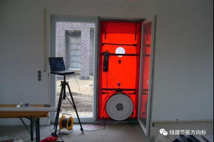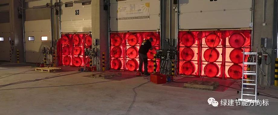 國外對于綠色建筑(DGNB)認(rèn)證和被動(dòng)房認(rèn)證都是有一個(gè)建筑整體氣密性檢測來驗(yàn)收房子,如下圖所示: