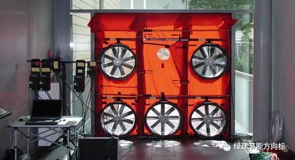 用一套鼓風(fēng)設(shè)備在門口安裝,通過抽風(fēng)和鼓風(fēng)來實(shí)現(xiàn)室內(nèi)外一定的壓差,計(jì)算房屋整體的氣密性。我們給大家科普的不是外國人怎么怎么采用材料來做到被動(dòng)房的嚴(yán)密性,而是他們在建筑整體氣密性檢測這一環(huán)節(jié)的嚴(yán)謹(jǐn)性。
