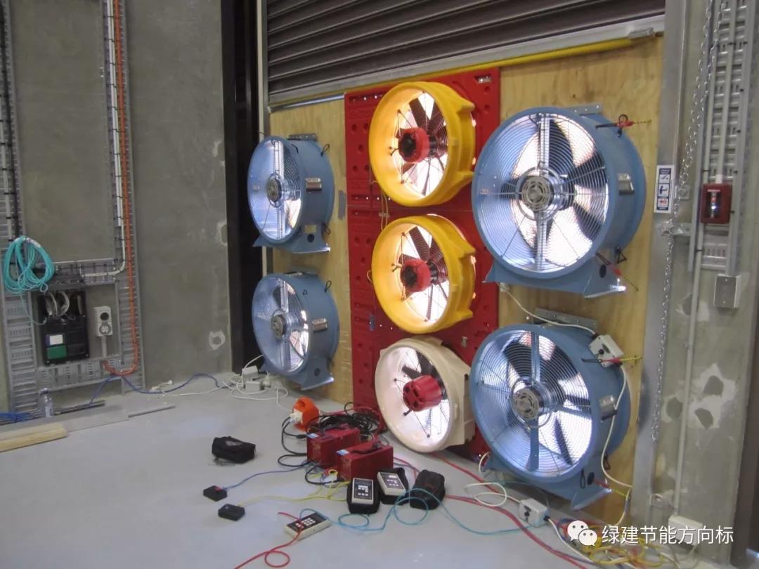 如果你們正在建設(shè)被動(dòng)房,相信你們一定遇到檢測這個(gè)難題。被動(dòng)房氣密性檢測的標(biāo)準(zhǔn)是要實(shí)現(xiàn)室內(nèi)外壓差50Pa下的換氣次數(shù)值做到0.6.對于一個(gè)小型建筑來講,用一臺(tái)風(fēng)機(jī)可以輕松實(shí)現(xiàn)這個(gè)目標(biāo),但是中國的建筑物體積非常龐大,想達(dá)到預(yù)定室內(nèi)外壓差值,必須鼓更多的風(fēng)量,也就是要配置更多的電風(fēng)扇。按照經(jīng)驗(yàn),一臺(tái)電風(fēng)扇的風(fēng)量在10000m3,左右,檢測3000平米的建筑物沒問題,超過這些數(shù)字,比如幾萬平米的建筑,那么就需要上更多的檢測設(shè)備。這一塊相信國人還不是很清楚。因?yàn)榘凑债?dāng)前的一些被動(dòng)房示范工程來看,多數(shù)以抽檢某幾個(gè)房屋合格為手段,很少有全部檢測整棟大樓的案例。下面我們帶來國外的一系列建筑整體氣密性檢測的案例,讓大家開開眼,看看外國人是怎么看待檢測這回事的!