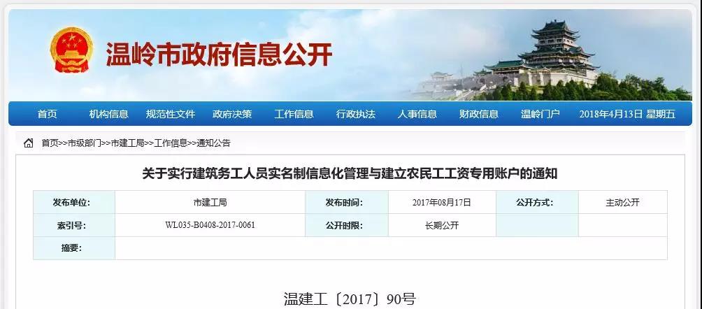 2017年10月1日起,浙江溫嶺新辦理施工許可及已辦理施工許可尚未開工的項目,必須實行建筑勞務(wù)用工實名制信息化管理。