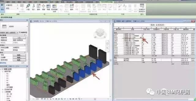 (模型與明細(xì)表的對(duì)應(yīng):在明細(xì)表中選定一類族,模型視圖中,相應(yīng)的族也表現(xiàn)為選中狀態(tài))