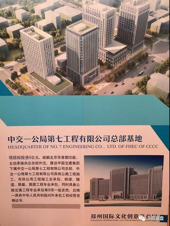 中交一公局第七工程有限公司擬在文創(chuàng)園區(qū),鄭開大道北輔道及紫寰路交叉口,打造中交一公局第七工程有限公司總部基地。