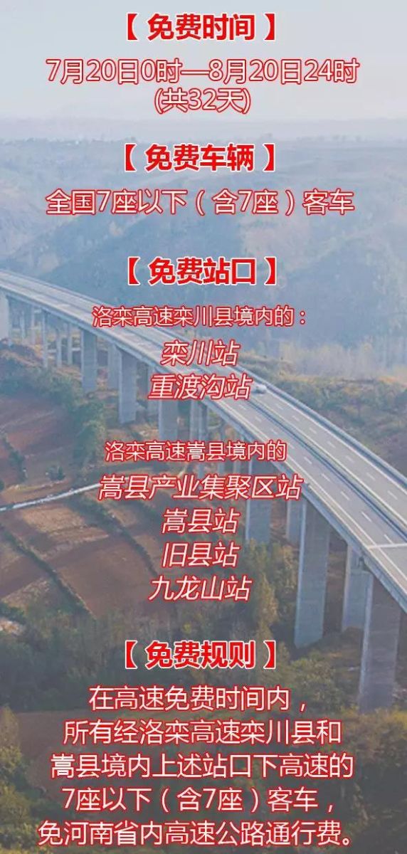洛陽(yáng)又一縣也要推出高速免費(fèi)活動(dòng)!
