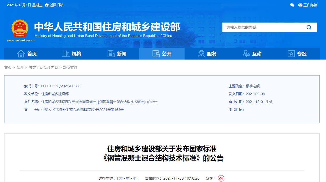現(xiàn)批準《鋼管混凝土混合結(jié)構(gòu)技術(shù)標準》為國家標準,編號為GB/T51446-2021,自2021年12月1日起實施。