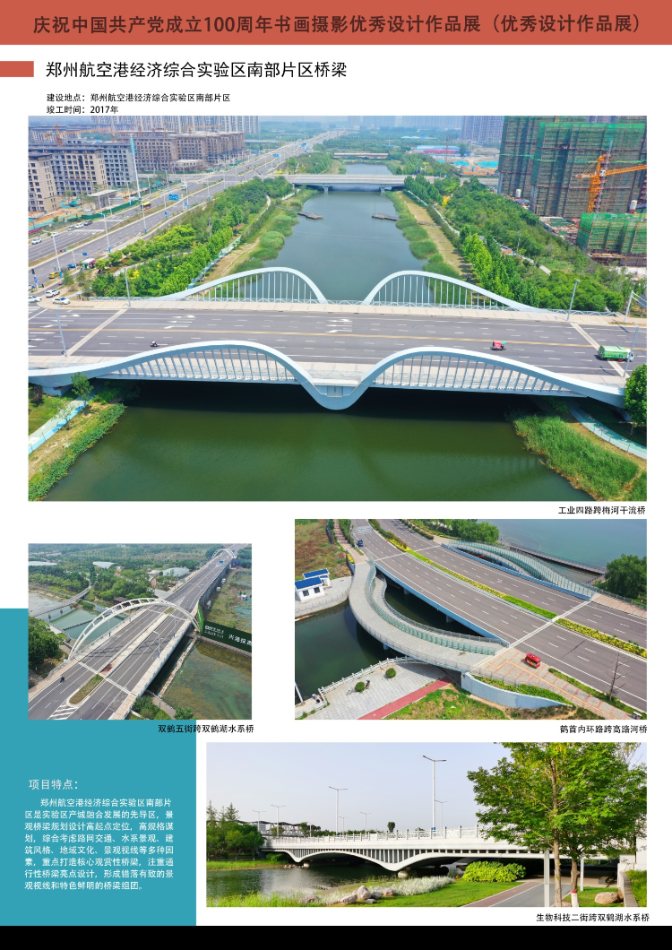 3)優(yōu)秀設計作品類:①鄭州市農業(yè)路快速通道照明工程;②鄭州航空港經濟綜合實驗區(qū)南部片區(qū)橋梁群工程。