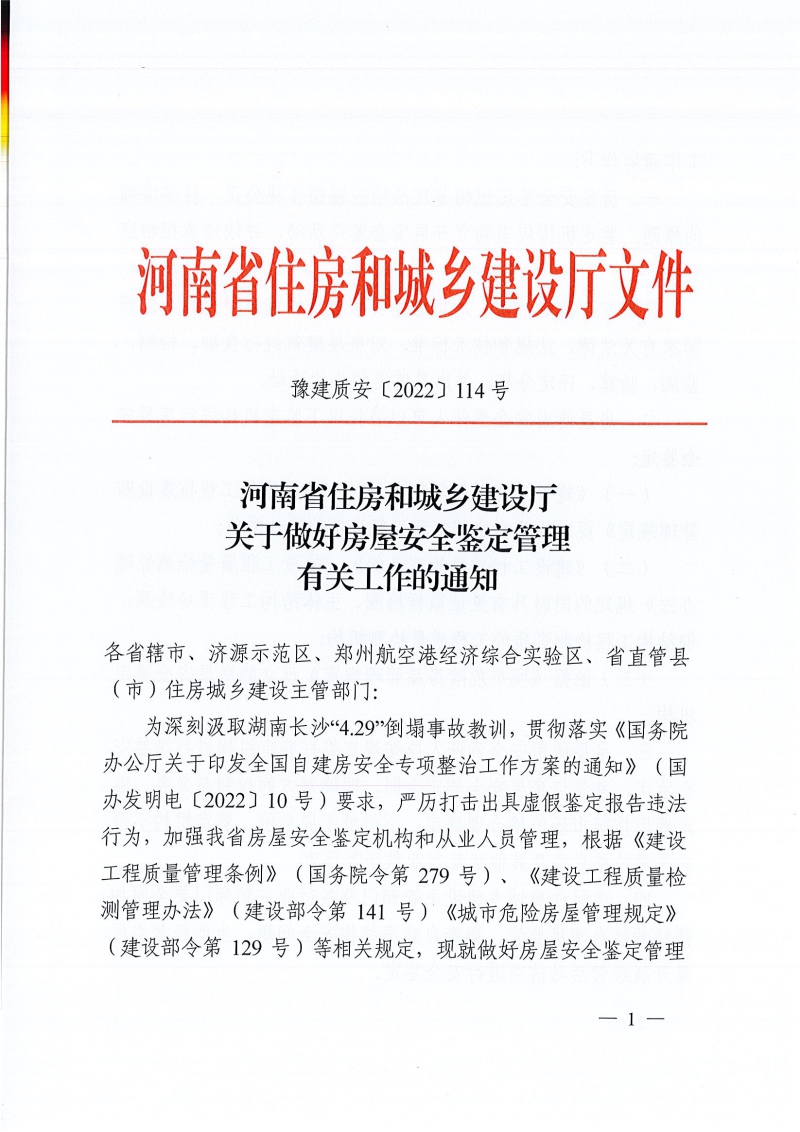 省住建廳關(guān)于做好房屋安全鑒定管理有關(guān)工作的通知