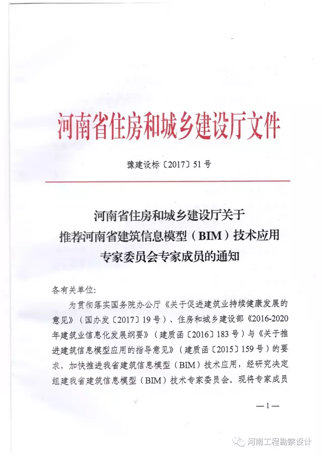 關于推薦河南省建筑信息模型(BIM)技術應用專家委員會專家成員的通知