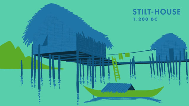為了避免濕氣的侵害,遠(yuǎn)離地面的干欄式建筑在濕潤的熱帶和亞熱帶地區(qū)盛行,中國南方俗稱“吊腳樓”。