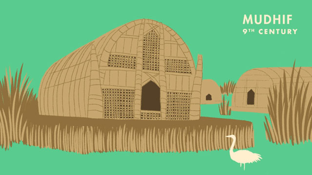 造型獨(dú)特工藝簡單的蘆葦屋,在阿拉伯半島的沼澤地區(qū)至今仍十分盛行。