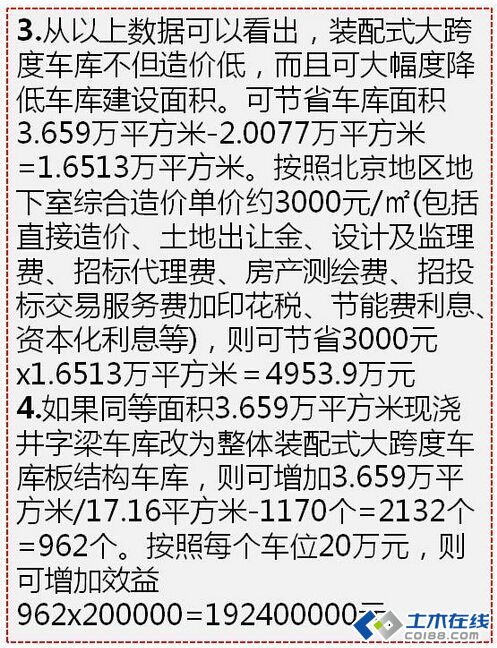 1.如果按照現(xiàn)澆井字梁結構8.1米x8.1米柱距,需要建設3.659萬平方米地下車庫才可滿足要求。現(xiàn)澆井字梁等方案每車位總面積21.87㎡(停車位、行車道)+2.187㎡(10%輔助房)+7.217㎡(人防)=31.274㎡。